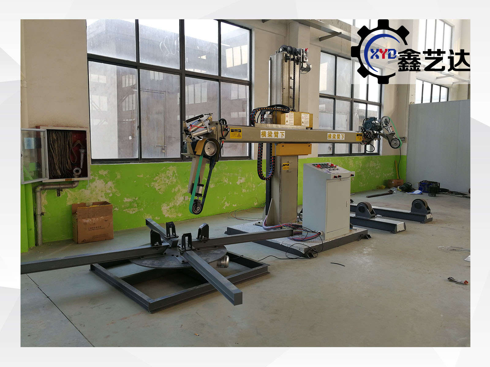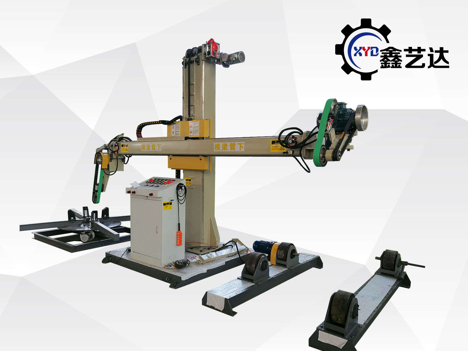 標(biāo)配載重1噸的罐體滾臺(tái),載重1噸的封頭轉(zhuǎn)臺(tái),橫梁上下、左右、工件旋轉(zhuǎn),變頻調(diào)速,一共三臺(tái)變頻器(滾臺(tái)、轉(zhuǎn)臺(tái)共用、轉(zhuǎn)換開關(guān)控制),橫梁有效行程2500mm